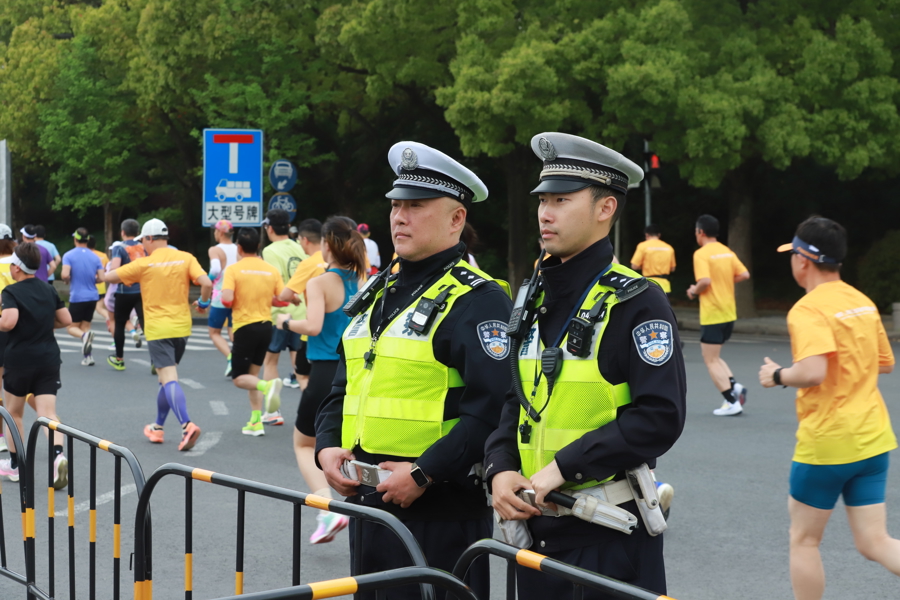 与此同时,警方还部署了便携式无人机反制设备,全程对赛道周边空域进行监测,严防“黑飞”无人机闯入。“未经报备的无人机一旦失控坠落,可能砸伤选手,风险隐患极大。”闵行公安分局情指中心无人机专班民警徐俊表示,通过空地协同、精细管控,警方全力确保每一位跑者都能安全、顺利地完成比赛。